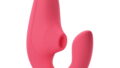 吸引と振動をダブルで楽しめるウーマナイザー! 吸引強弱は8段階、バイブの振動パターンは6種類搭載。 人間工学に基づいたデザインによるボディは軽量で柔軟性があり、片手やハンズフリーで楽しむことができます。 完全防水なのでバスルームでも使用可能。 使用後は丸洗いでき、衛生的に使用できます。 独立した2つのモーターにより、吸引と振動を同時に、または別々で楽しむことができます。 吸引と振動、ダブルの刺激…