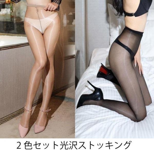 2枚セット 光沢系ストッキング (ベージュ、ブラック) 1デニール 超薄型 セクシーパンスト 美肌を演出 艶ありタイプ F009 画像2